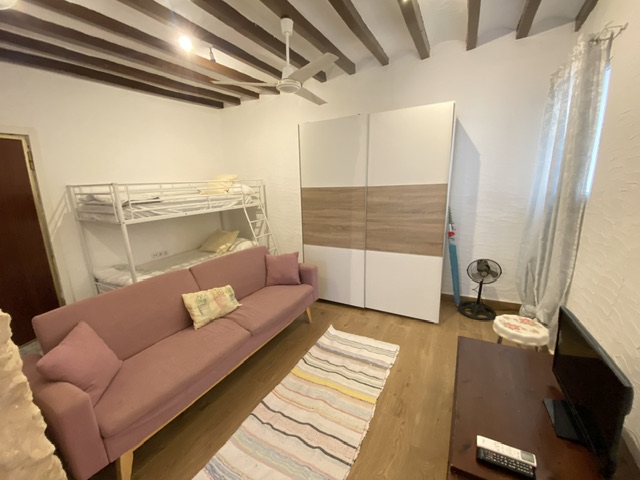 Dispone de un dormitorio independiente con cama de 1,80 x 2 y un sofá cama en el salón.
